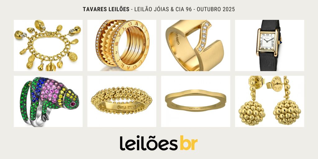 O Tavares Leilões realizará no dia 10 de Setembro, às 19h, o seu tradicional Leilão Joias & Cia 96, com 229 lotes belíssimos.