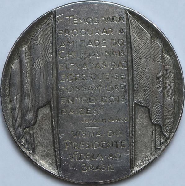 clique aqui para ver o loteMedalha do Brasil – 1947 – Prata (.900) – 199.8 g – 70 mm – Visita do Videla, presidente do Chile, ao Brasil – Presidente Dutra