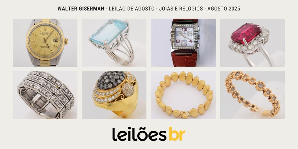 O Walter Giserman Leilões fará no dia 6 de Agosto, às 15h, o seu Leilão de Agosto – Joias e Relógios.