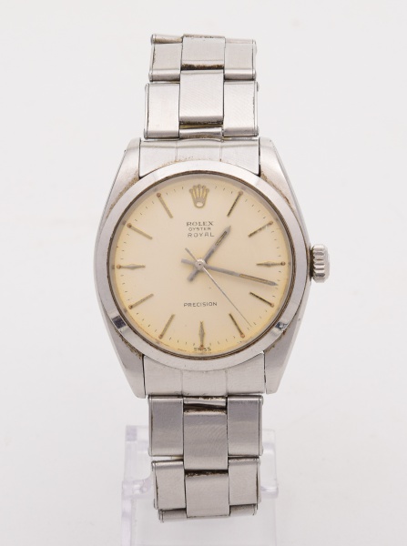 ROLEX OYSTER ROYAL – Relógio suíço de pulso. Caixa (34 mm) e pulseira em aço. Mostrador champanhe com marcadores prateados, visor acrílico.
