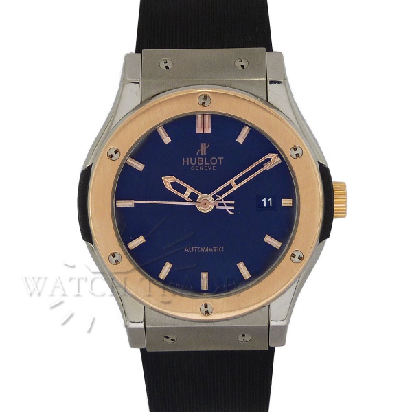 RELÓGIO HUBLOT CLASSIC FUSION AÇO E OURO ROSÉ. REF. 511.NO.1181.LR. CAIXA EM AÇO INOXIDÁVEL, BEZEL EM AÇO E OURO ROSÉ 18K MACIÇO, ASSINADA HUBLOT. MEDE 42mm. VIDRO EM CRISTAL DE SAFIRA. COROA EM AÇO INOXIDÁVEL COM ACABAMENTO EM OURO ROSÉ, ASSINADA HUBLOT.